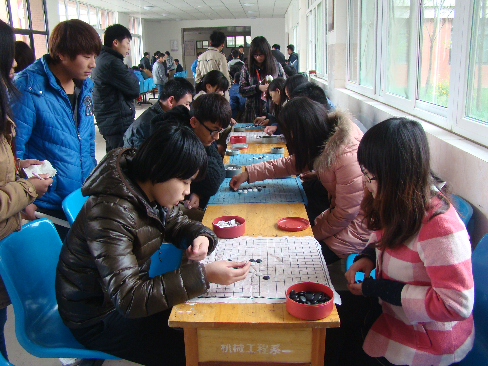 上午八时,五号和七号长廊已人山人海,齐聚八系的健将。放眼望去个个都身怀绝技、自命不凡,人人都要跃跃欲试。八点一刻,在主持人铿锵有力的话语中比赛拉开了帷幕,比赛分个人赛、团体赛。比赛气氛紧张而激烈,选手们每走一步棋都牵动着周围同学的神经,更让对手提高警惕,谨慎小心应付。他们聚精会神的盯着每一步棋,小心翼翼,每到精彩之处都会使现场的观众在心中暗暗叫好,经过淘汰、半决赛、决赛各个环节,精彩的角逐之后,结果终于见分晓。比赛在下午四时落下了帷幕。