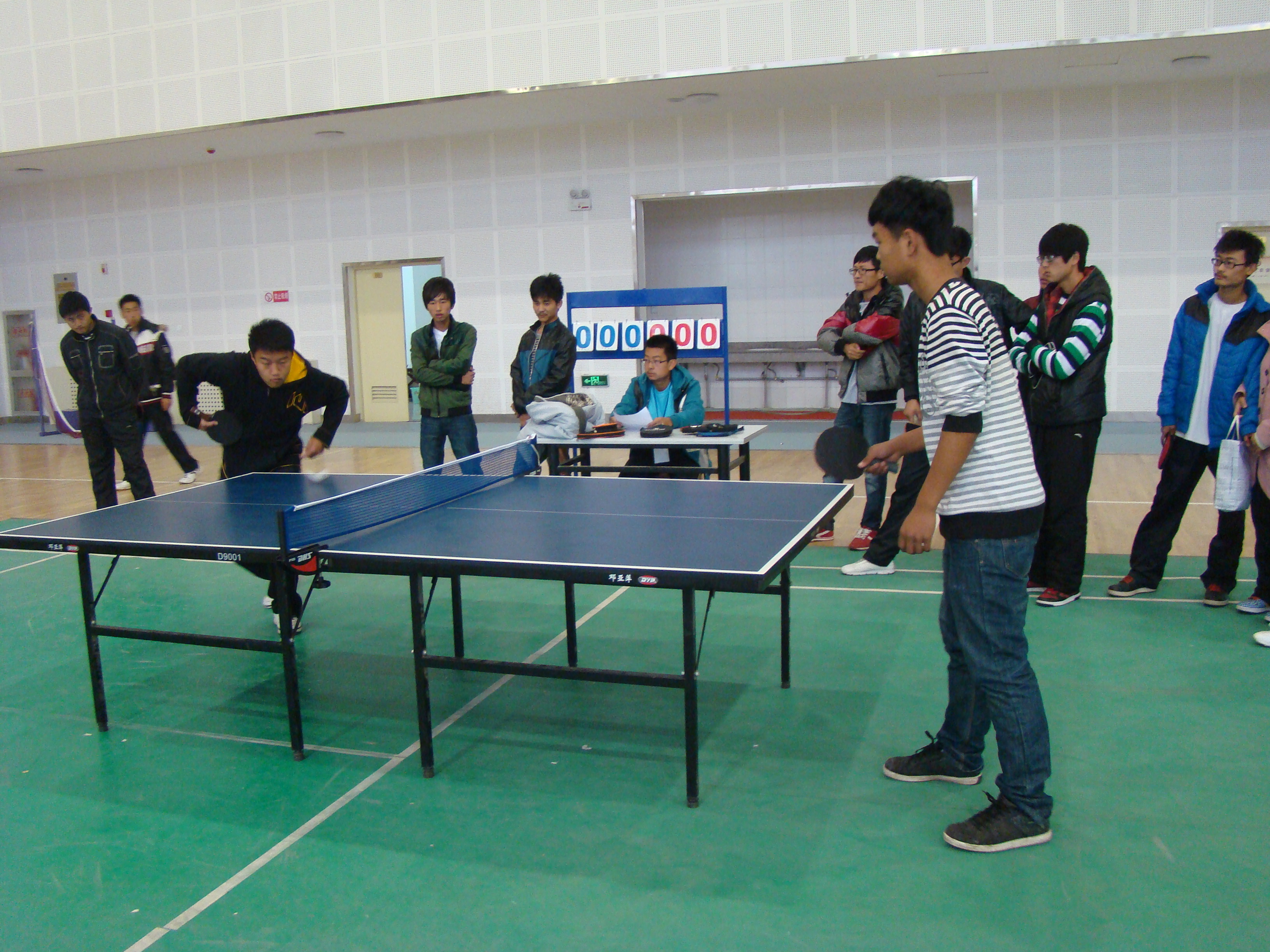 上午七点五十分全场座无缺席,八点决赛开幕式正式举行,各系运动员、裁判长迈着悭锵的步伐斗志昂扬的进入会场。随后裁判代表、选手代表分别上台宣誓,一定会在比赛中坚持“友谊第一,比赛第二”的原则下,奋勇争先,完善自我。今天共有男单、女单、女双、男双4个项目产生进入决赛,全场一五局三胜制。终于,比赛正式开始,只见每位选手都实力不凡,或是凌空吊球,或是冰冷的扣杀,无不扣人心弦,精彩纷呈,不时迎来观众的阵阵叫好声。特别是在男单决赛中。第一场中机械系选手灵活的跑位和凌厉的攻势抢占先机,率先得分,在熟悉打法之后,轨道系的选手也逐渐的找到了应对方法。他用高超的回球迅速追平了比分。比分在大家的叫好声中直线上升。双方势均力敌最后有机械系的一次失误最终兵败于轨道系。下午5点大会顺利落下了帷幕。