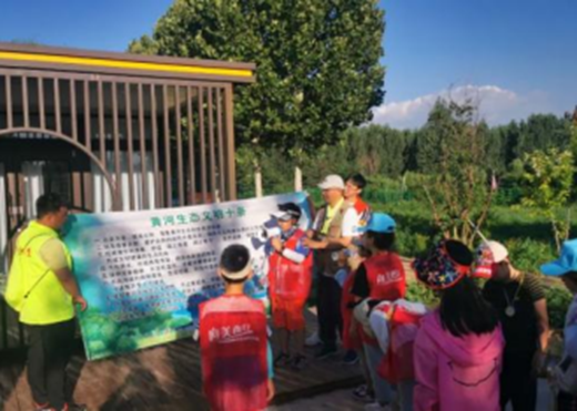7月7日,绿块公益与省少年宫再次携手在黄河生态文明环境教育基地开展长河落日黄河夜观活动,大葱青志愿服务队受邀参加。小朋友们在东岭书院志愿者的带领下,一起学习并宣读了绿色低碳生活宣言的内容后,认真签名承诺,今后将在生活中践行绿色低碳生活方式。傍晚在东岭书院志愿者讲解完夜观注意事项及工具使用后又带领小朋友进行了“夜观黄河生物多样性”活动,发现生物多样性,感受人与自然和谐共生。