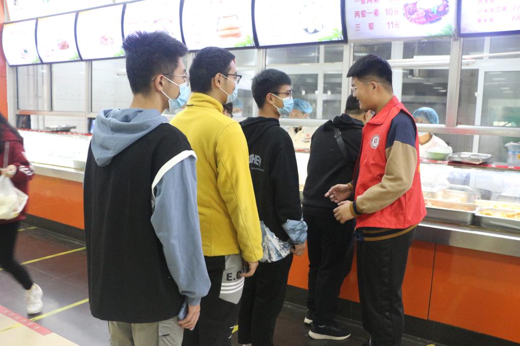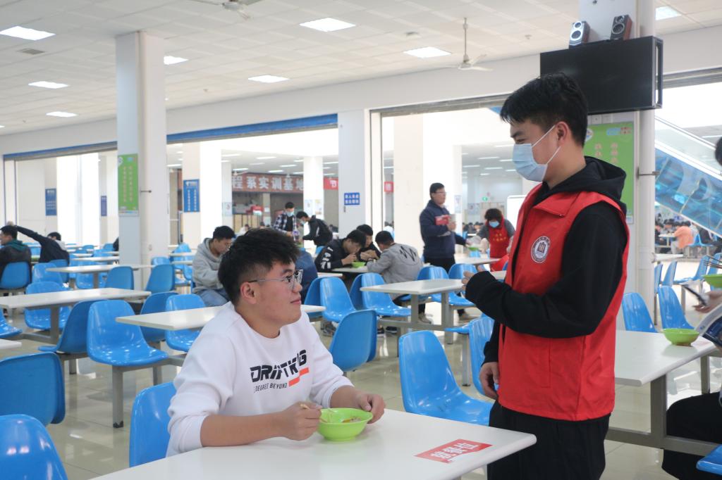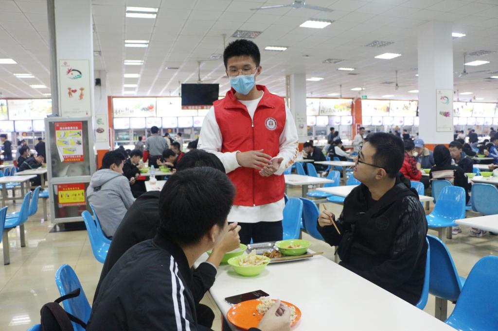 活动当天 ,我院学生干部以身作则,化身光盘行动志愿者,分散在餐厅每个楼层,呼吁同学们在就餐点菜时适量适度,剩饭打包,减少奢侈浪费,自觉践行“光盘行动”。希望通过节俭就餐、文明就餐的实际行动,树立起科学消费、合理消费的文明理念。
