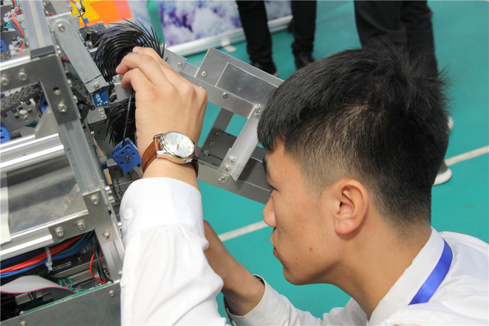 本届“挑战杯”大赛以“青春新动能 挑战创未来”为主题,全省共有88所高校参与其中。经过前期初赛、复赛我院铁道机车与机电装备系大学生发明创新协会提报的上述两件作品从全省5000余件参赛作品中脱颖而出杀入总决赛。参加总决赛的筹备工作得到了铁道机车与机电装备系师生的大力支持,本次两件获奖作品均由张为宾老师指导,一等奖作品“老有所椅”多功能护理轮椅病床由李明智、勾钰水等同学制作完成,它是一个能够进行床和轮椅组合变形的多功能护理轮椅病床,实现了“十秒钟床变轮椅”,可以进行病人左右翻身、坐起、屈腿、排便等功能,以及进行远程控制和护理,解决许多脑瘫、脑梗、脑血栓等老年长期卧床患者护理病人过程中的诸多不便。该作品以科学的设计、完善的功能得到大赛专家组的一致肯定,甚至获得相关医疗期开发厂商关注。三等奖作品全自动纸币清分机由吕志浩、吴鸿远等同学完成该机器综合点钞机验钞机清分机多种功能于一身,利用传感器技术,实现了六种面值的纸币的高效清分,该作品设计精巧、运转流畅,成为赛会上人气最高的作品之一。
