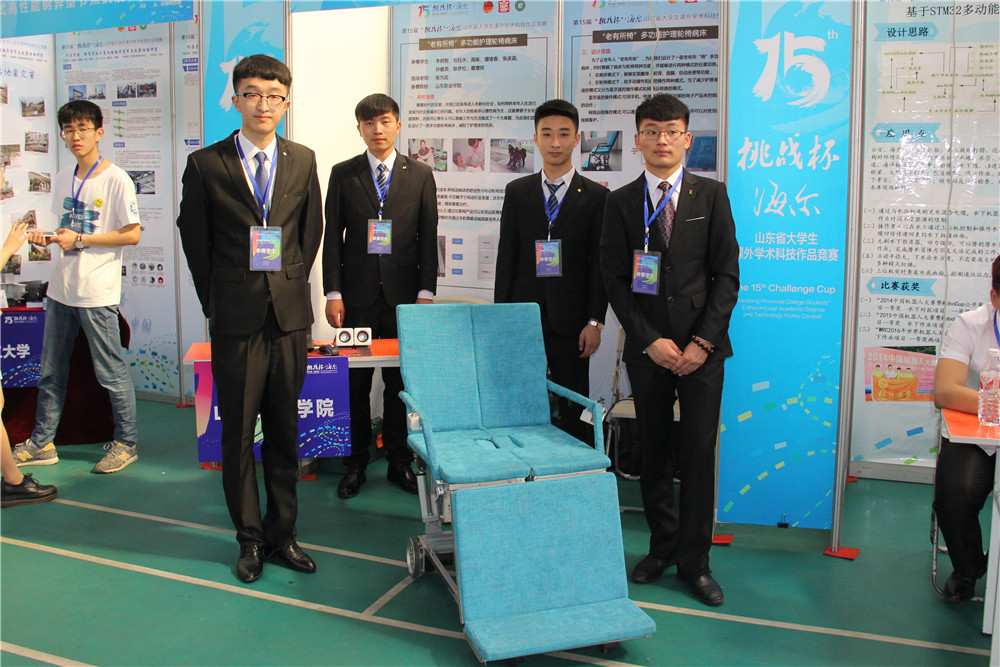 近日,由团省委、省科协、省教育厅、省科技厅、山东社科院、省学联、烟台市人民政府共同主办的第十五届“挑战杯”山东省大学生课外学术科技作品竞赛决赛举行,我院代表队作为参加本次全省竞赛晋级总决赛仅有的三所高职院校之一参赛并取得佳绩。其中“老有所椅”多功能护理轮椅病床荣获大赛一等奖,全自动纸币清分机获得三等奖,学院整体的参赛组织工作也得到大赛组委会认可,获得“优秀组织奖”荣誉称号。