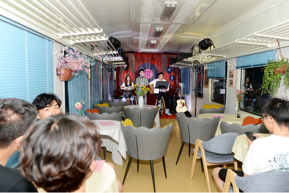 5月13日,我校团委举办第一届火车音乐节民谣专场,在网红打卡点火车头“曾经咖啡吧”开场。党委书记高磊,副院长郭培谦共同陪伴同学们,一起感受民谣情怀。 山职之音,无限享受,感受纯粹的鼓点与琴弦的碰撞,沉浸在音乐的世界,肆意呐喊着青春,这一刻,聆听鼓膜与内心的震动。