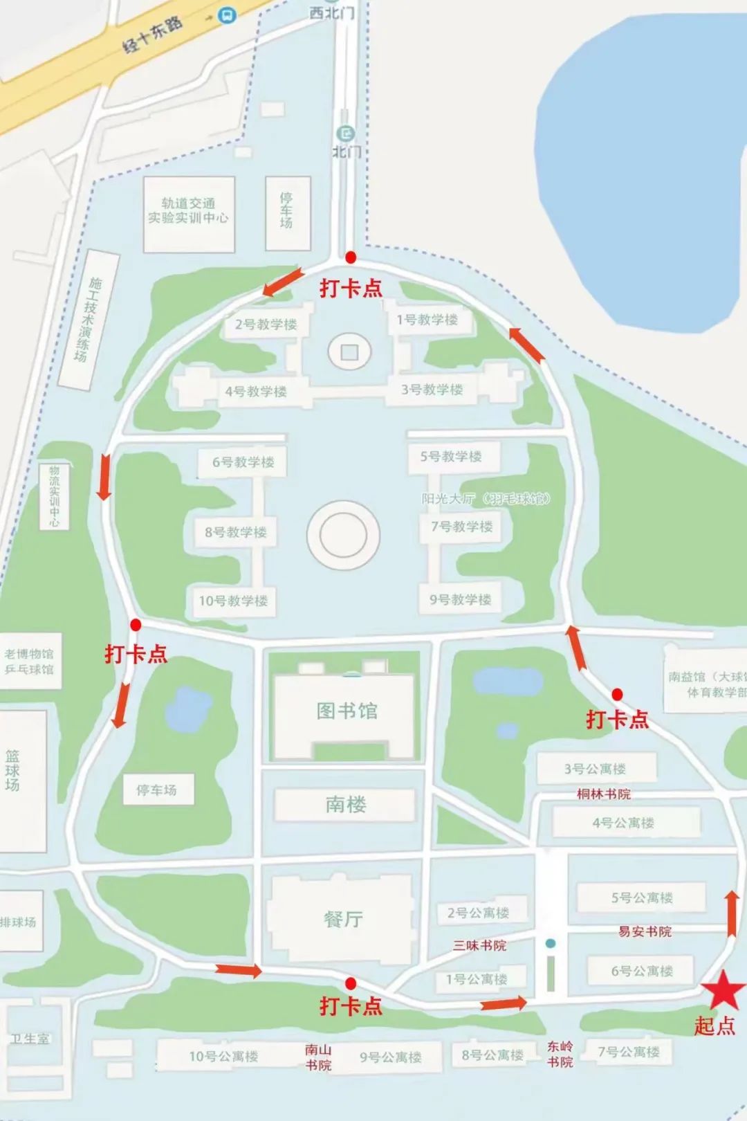 参与活动的同学需要佩戴荧光圈,活动将使用学校广播播放音乐,同学们可以围绕学校进行跑步或健走,外环路上会设立打卡点,也可以在操场中间随着音乐动起来 ,同时学校田径场主席台也会有精彩的社团风采展示。