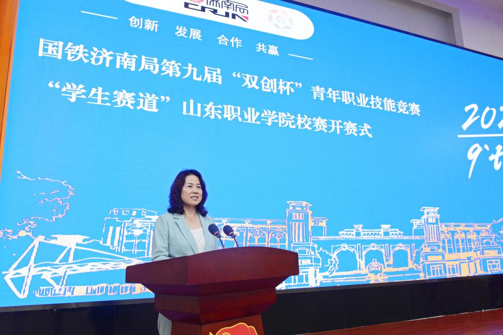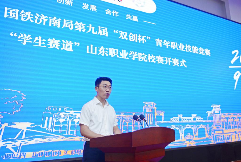5月23日下午,国铁济南局第九届“双创杯”青年职业竞赛“学生赛道”校赛开赛式在我校图书行政楼西报告厅举行。学校党委书记赵凤文、国铁济南局团委书记鞠鹏出席并讲话。党委副书记郭鹏、副院长李新华,国铁济南局团委宣传部部长徐栋晨出席活动。