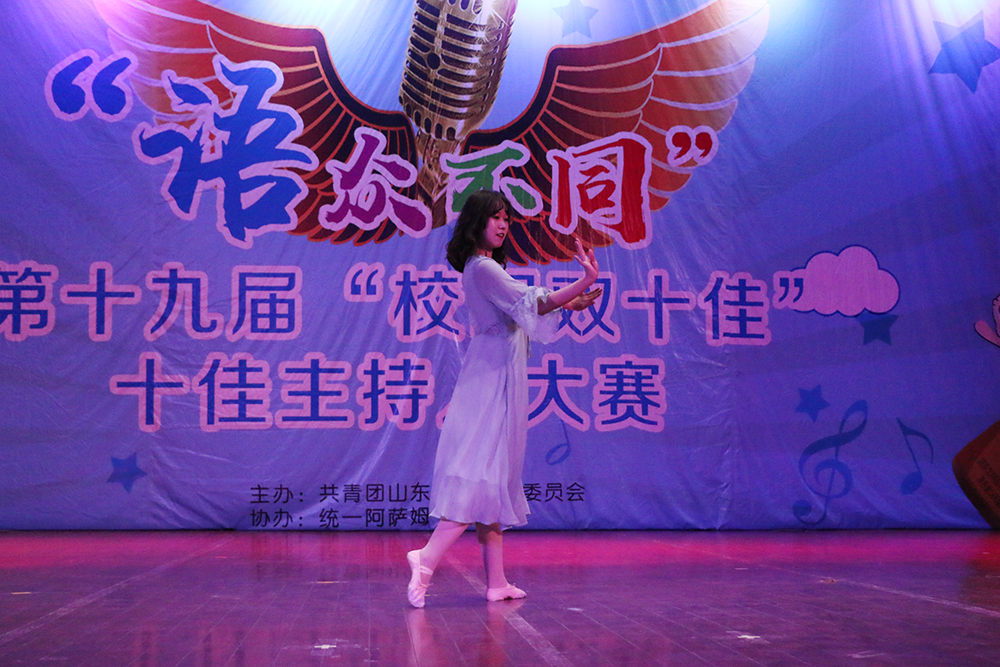 本次大赛共分为四个环节,第一个环节才艺展示,选手们各展所长,宋德勇的脱口秀尽显幽默,闫晨昱的舞蹈《万里长城》动作矫健、刚劲有力,于群的篮球操尽显大学生朝气与蓬勃,让观众大开眼界。