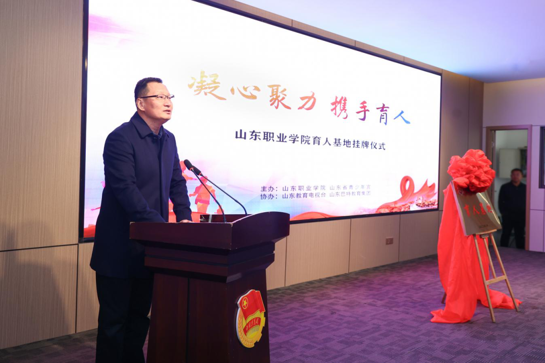 为深入推进“三全育人”,打造沉浸式育人大课堂,全面提高青年人才培养质量,3月25日,我校在山东省青少年宫常青营地举行“凝心聚力·携手育人”育人基地挂牌仪式,山东教育电视台、山东巴特教育集团协办。共青团山东省委副书记尚胜波,山东省青少年宫主任张富国,院长郭培谦出席,校团委副书记宋高妮主持。