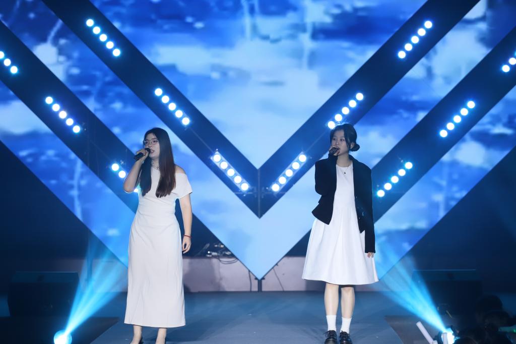 第一轮独唱环节中,刘鑫权带来的《听海》让观众仿若置身于暮色下的沙滩;赵艺璇带来的《一样的月光》直抵人心深处最柔软的角落,让人不禁在聆听中停下匆忙的脚步,去思考岁月带给自己的改变;郑艺雯的《秋风》让听众沉浸于那秋意阑珊的情境之中,仿佛能看到那个在秋风中独自徘徊,思念着远方爱人或故友的身影,心中也随之泛起阵阵涟漪;朱怡辰带来的《悟空》充满了对命运的质问与不甘,让听众在聆听中感受悟空的英雄心迹,领略那冲破枷锁、追求自由与自我救赎的壮烈情怀。随后,校园十佳主持人带来朗诵《我们这一年》,以学校一年的工作发展为线索,既回顾了过去一年的风雨历程、成长收获,又表达了对未来的期待与展望,让观众在回忆与憧憬中产生共鸣。