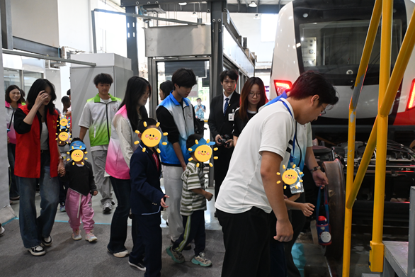 活动中,孩子们在城轨学院实训室近距离接触地铁模拟设备,在志愿者指导下体验“小小地铁员”的工作;“车同轨”铁路技术史馆内,讲解员结合实物与史料,生动讲述中国铁路从蒸汽时代到高铁时代的发展历程;动车组实训中心里,孩子们坐上模拟驾驶舱,亲手操作设备,沉浸式感受动车驾驶的乐趣;随后走进天佑书院,书院文化墙前志愿者向孩子们生动讲述每一张照片背后的故事,舒适的书院环境让孩子们倍感温馨。研学尾声,食堂里热气腾腾的饭菜端出,志愿者们主动帮孩子们添饭、夹水果,孩子们边吃边分享研学中的趣事,笑声不断。