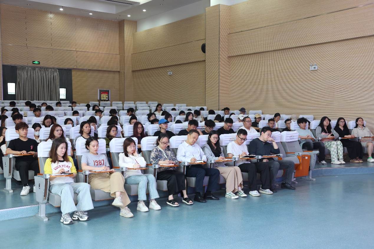 为帮助师生更好地了解就业形势,进一步引导广大学生树立正确的成才观、职业观和就业观,提升就业竞争力,5 月 16 日,副院长张少飞在东报告厅讲授了一堂深入浅出的形式政策课。天佑书院全体辅导员以及二百余名学生聆听了此次专题讲座。