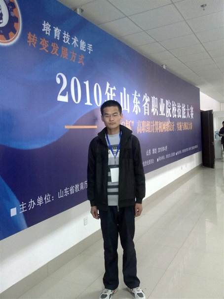 2010年他代表学校参加了山东省教育厅举办的山东省职业院校技能大赛获得网络设备调试组一等奖,并且被选拔参加2010年在天津举办的全国职业院校技能大赛,获得三等奖,用自己所学的知识为学校争得了荣誉。
