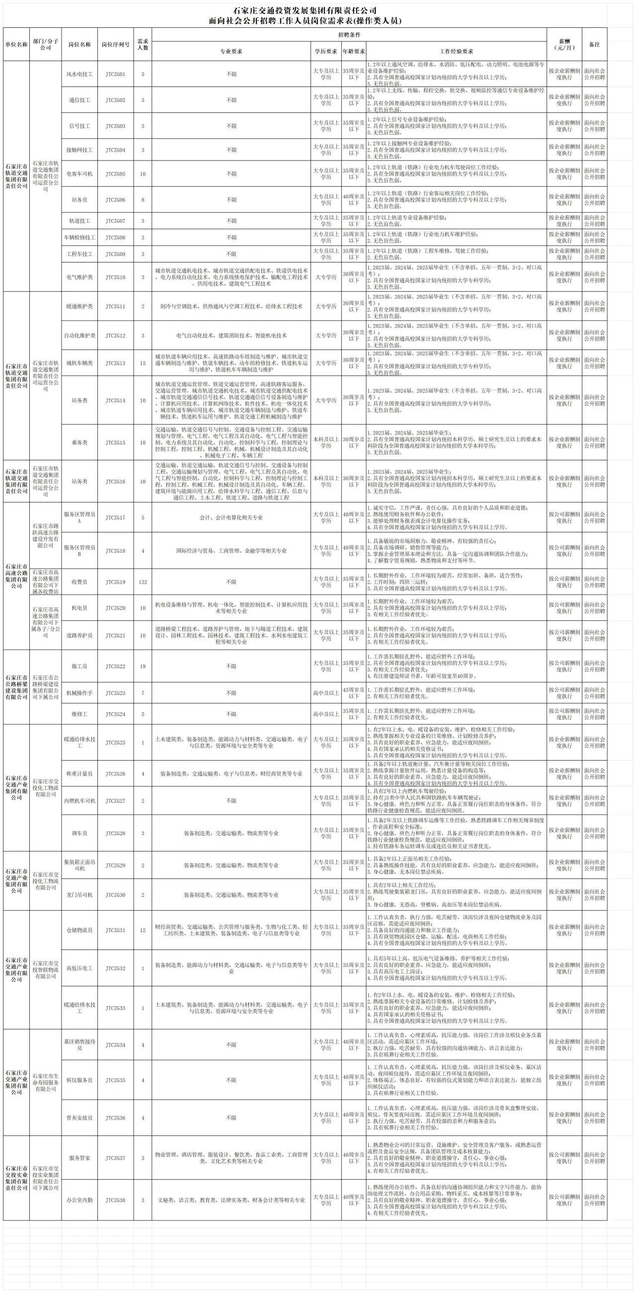石家庄交通投资发展集团有限责任公司2025年面向社会公开招聘操作类工作人员公告