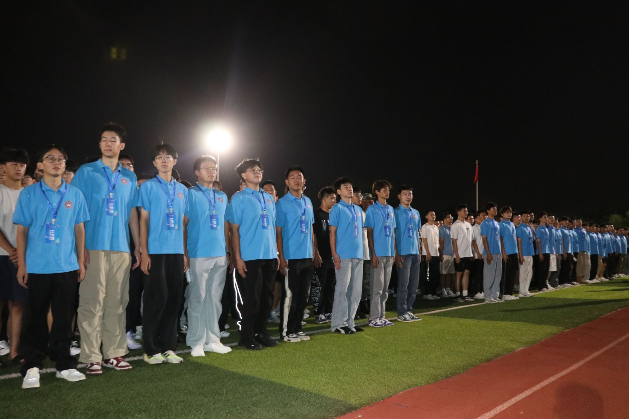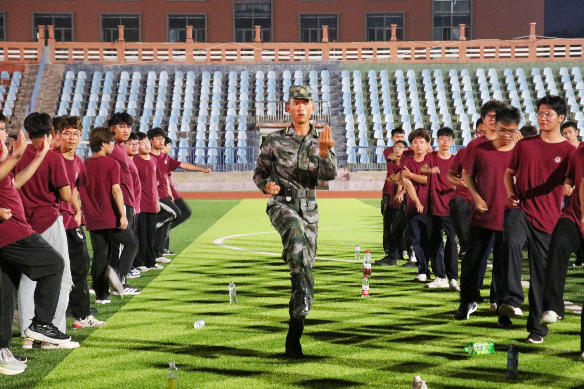 “弓步冲拳!穿喉弹踢!马步横打!”教官站在队伍前方,一边喊着招式口令,一边做出标准动作,手臂出拳有力,脚步落地沉稳。新生们紧随其后,模仿着教官的姿势,握拳、出拳、踢腿,动作从一开始的生涩僵硬,到逐渐变得连贯有力。红色的身影在灯光下穿梭,拳风裹挟着少年的朝气,打破了夜晚的宁静。