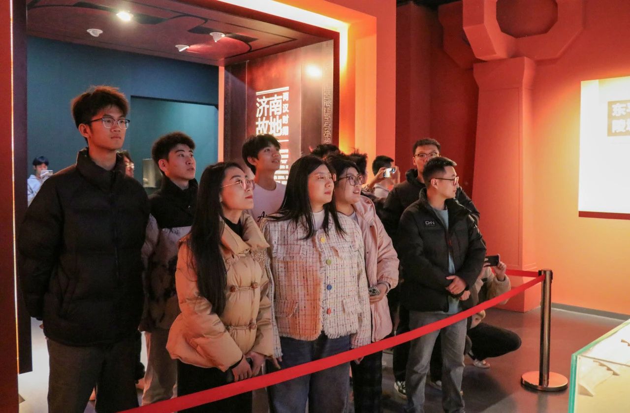 馆藏千秋事,鉴史悟真章。踏入章丘博物馆的历史展厅,仿佛穿越了时空的隧道,回到了那个古老而神秘的时代。在讲解员的引导介绍下,师生们聆听着文物背后的故事,感受着章丘大地的沧桑巨变,从古老的农耕生活到战争的硝烟,从古老的神话到艺术的创作,无不展现了古人的智慧、历史的变迁和时代的进步。