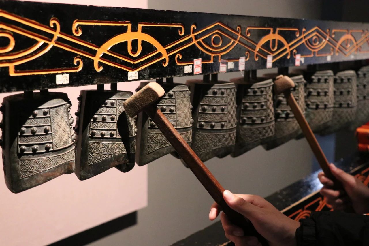 展厅中还通过模型和场景复原,生动地再现了古代章丘的社会生活和文化活动,师生们敲击着青铜乐器,亲身体验古代章丘人民的智慧和创造力,更加直观的感受着古韵的魅力。