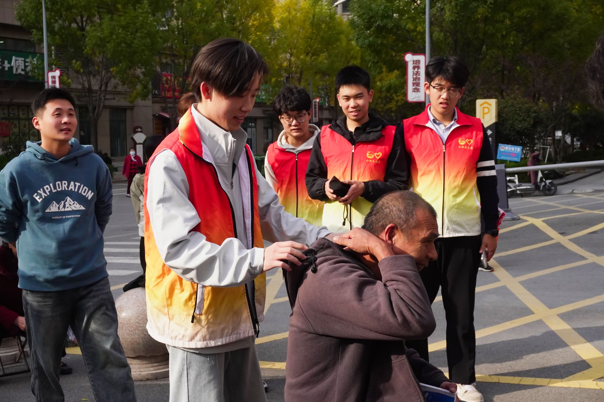 除了精彩的文艺表演,志愿者们还为老人们送上了一份贴心的“健康关怀”——设置了实用的按摩教学环节,帮助大家放松身心。志愿者耐心示范肩颈放松的简单手法,从穴位按压到肌肉放松,一步步细致讲解。老人们边学边练,互相交流体验,现场气氛温馨而融洽。
