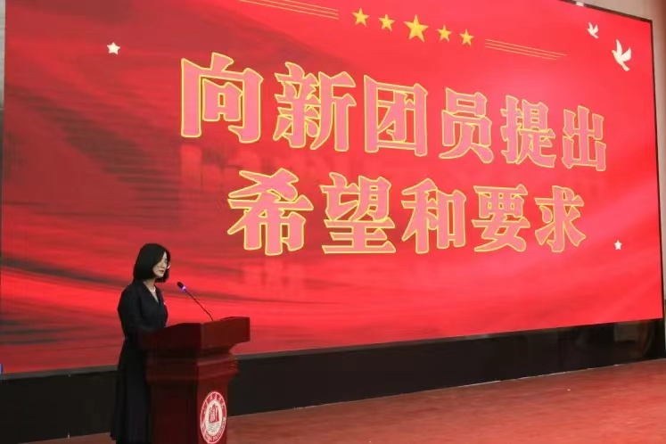宣誓结束后,新团员代表李梦渊同学和优秀团员代表崔远博发言。激励新团员们努力履行团员义务,做好团员工作。孙梅玲老师也向新团员提出了殷切的希望和要求,鼓励他们勤奋学习、勇于担当,发挥团员的先锋模范作用,在共青团的旗帜下不断成长进步,成长为一名合格的共产党员为目标、为光荣,努力成为社会主义事业的合格建设者和可靠接班人,在中国式现代化建设的新征程上挺膺担当。