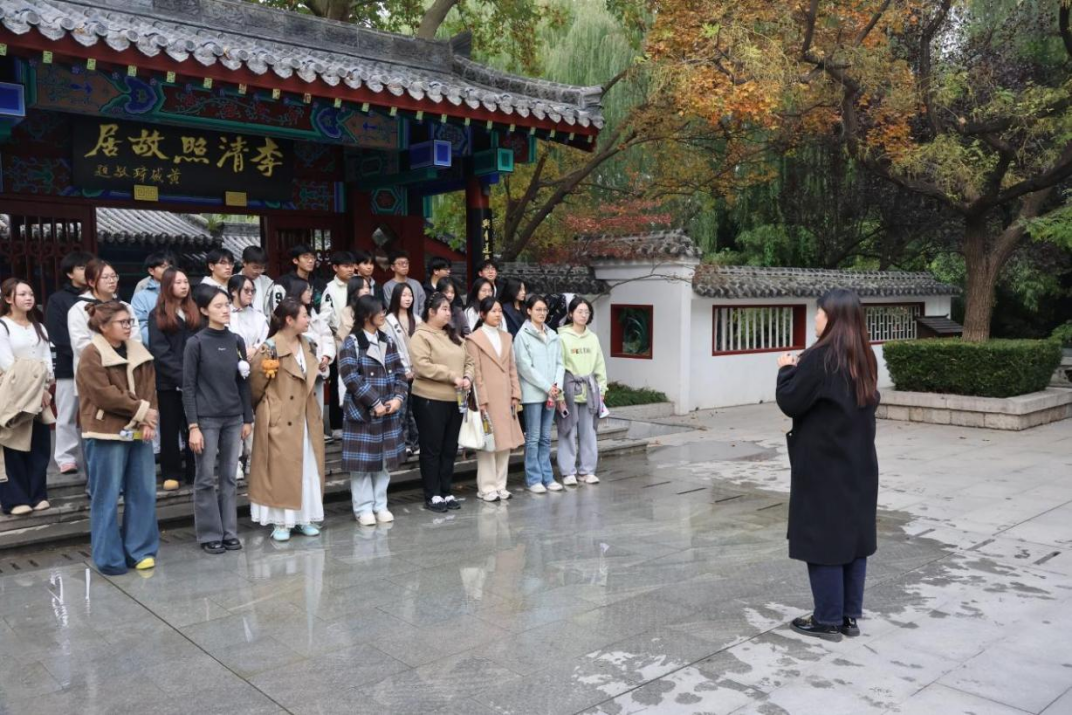 为深入挖掘济南文化底蕴,推动实践育人走深走实,11月6日,易安书院党总支以“读济南故事,走泉城大地”为主题,组织开展“走・读青春——文渊溯新行”研学实践活动。书院党总支书记、院长钮晓悦,人文与基础教学部教师宋艳丽带领40余名师生走进明水古城李清照故居,在实景浸润中感悟易安文化,汲取精神力量。