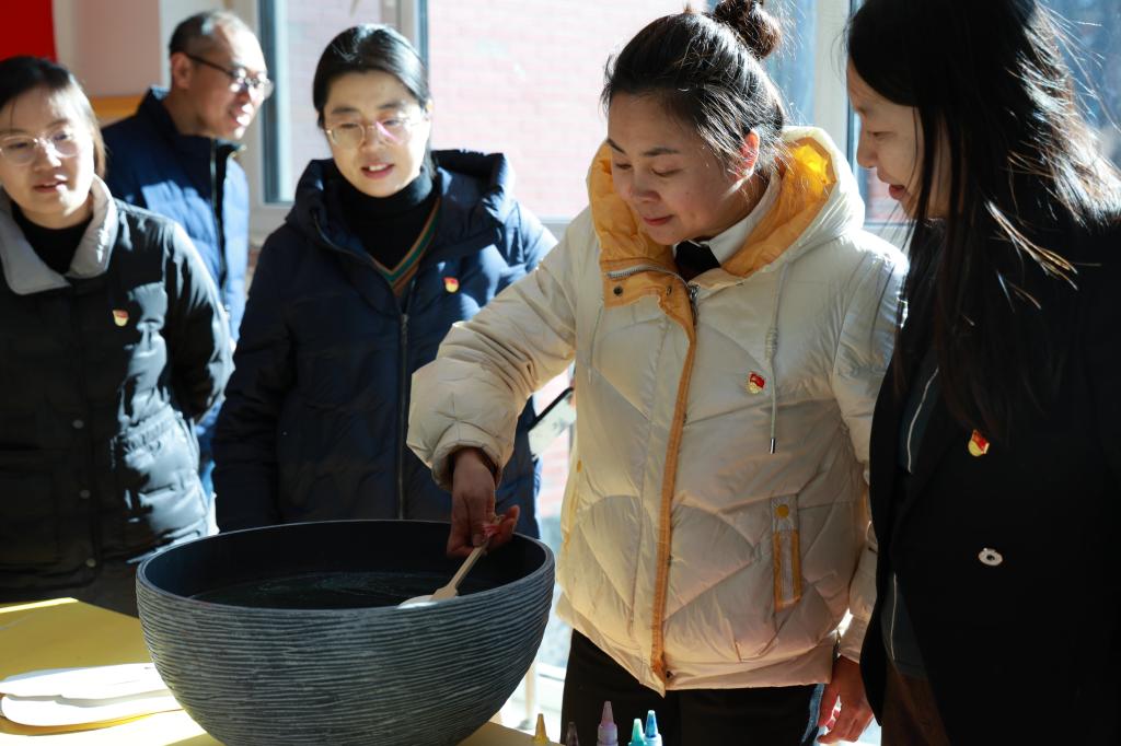 活动尾声,生物工程学院的老师们还参与了学生传统文化活动,体验了中华非遗文化——漆扇的制作,现场氛围和谐欢乐。
