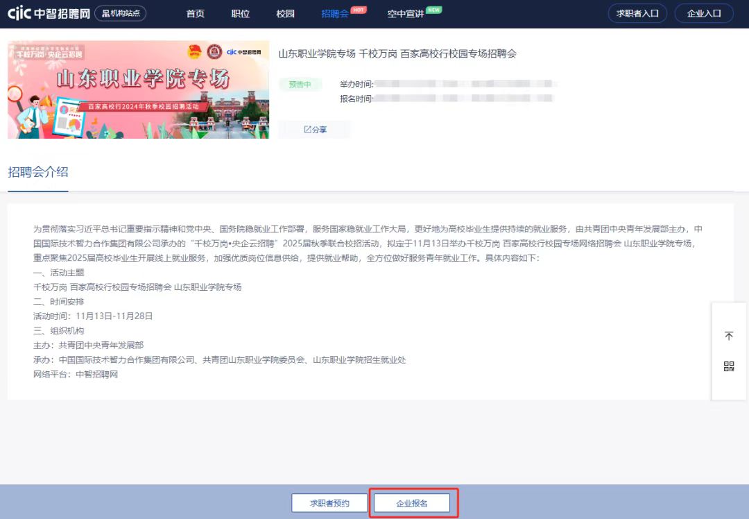 点击页面右下角【企业报名】按钮。