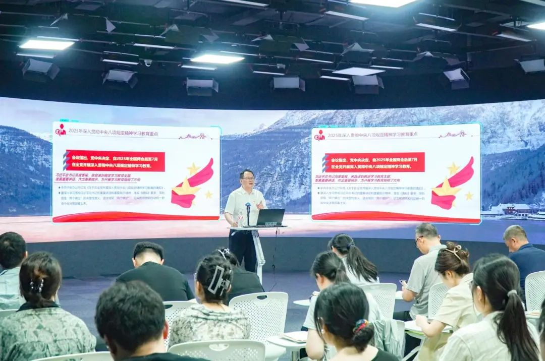 为扎实开展深入贯彻中央八项规定精神学习教育,引导全体师生树立廉洁自律意识,筑牢思想防线,6月23日,院长郭培谦于4号教学楼全景教室讲授专题党课,人事处党支部、生物工程学院党总支、南山书院党总支党员和学生代表50余人参加。