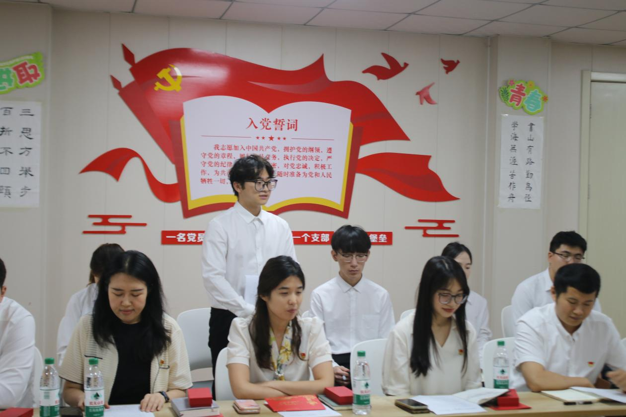 全体党员庄严地面向党旗,重温入党誓词,激励大家在新时代学校发展的新征程上永葆初心、勇担使命,在各自岗位上始终保持昂扬向上的奋斗激情。