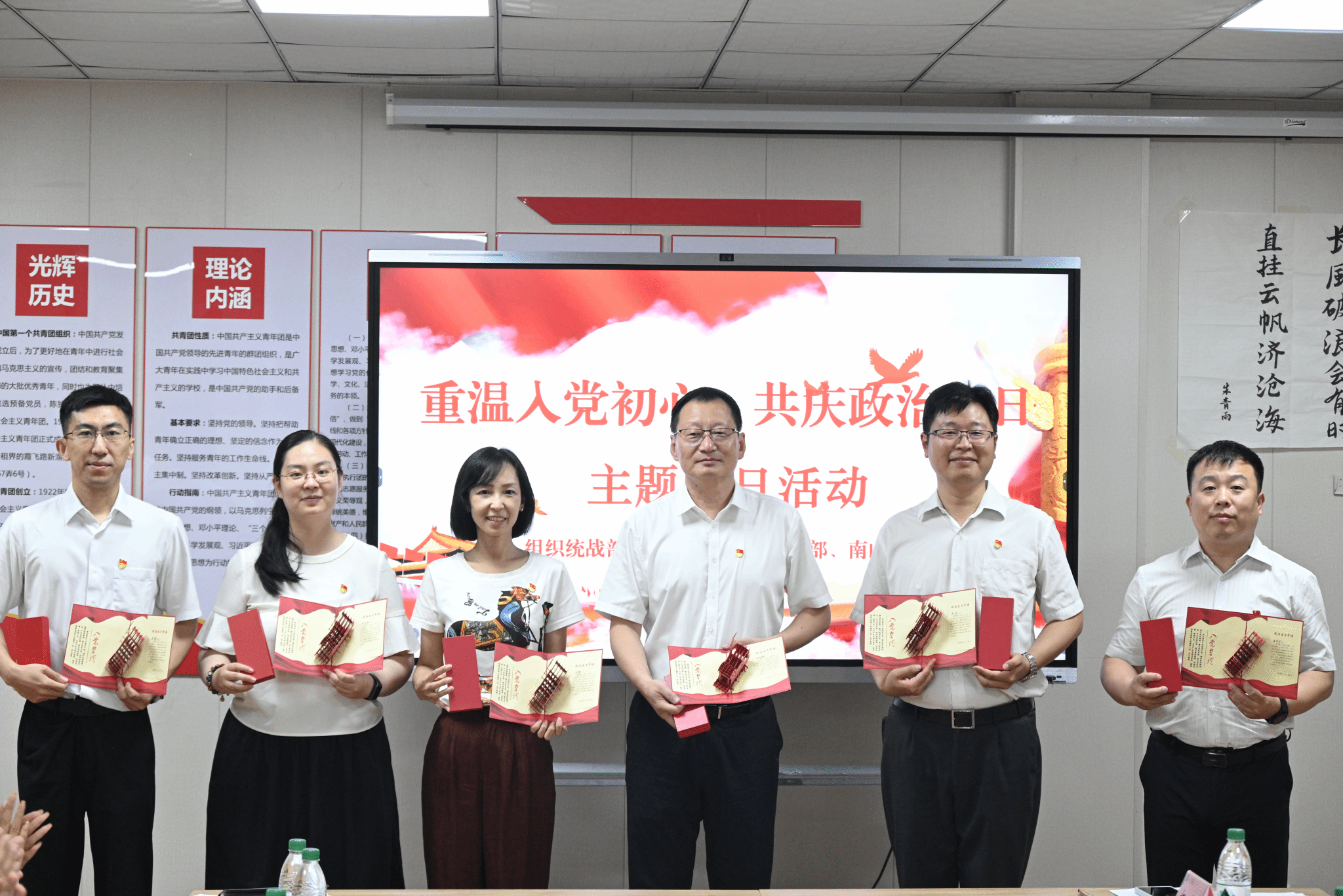 为扎实开展深入贯彻中央八项规定精神学习教育,引导党员干部进一步坚定理想信念,增强党性修养,6月30日,在七一建党节来临之际,组织统战部党支部、人事处党支部及南山书院党总支全体党员联合开展“重温入党初心,共庆政治生日”主题党日活动。党委书记赵凤文、院长郭培谦以普通党员身份参加本次主题党日活动。