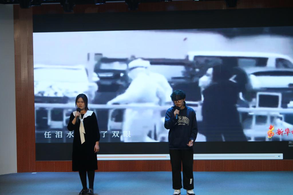 本次比赛分为歌曲独唱、两两组队PK、师生互动三个环节,在开场舞《yes,ok》的热烈氛围中拉开帷幕。在独唱环节,十位选手各展风采,有的歌舞高昂催人奋进,有的情感细腻打动人心,其中耿海鹏用自己低沉又浑厚的嗓音将《流浪记》演唱淋漓尽致,令在场观众感受到了意志坚强的少年气息,赢得阵阵喝彩;郑舒方演绎了经典歌曲《荷塘月色》,音色温柔甜美,台下观众默契地一起打着节拍,感受到浓厚的中国风韵。