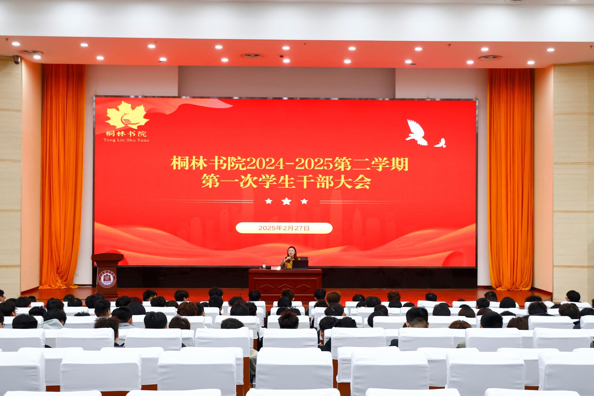 为进一步加强学生干部队伍建设,充分发挥学生干部示范引领作用,增强学生干部的综合素质和工作能力,2月27日,桐林书院在西报告厅召开2024-2025年第二学期第一次学生干部大会。桐林书院团总支书记赵呈然主持会议,桐林书院全体学生干部参加会议。