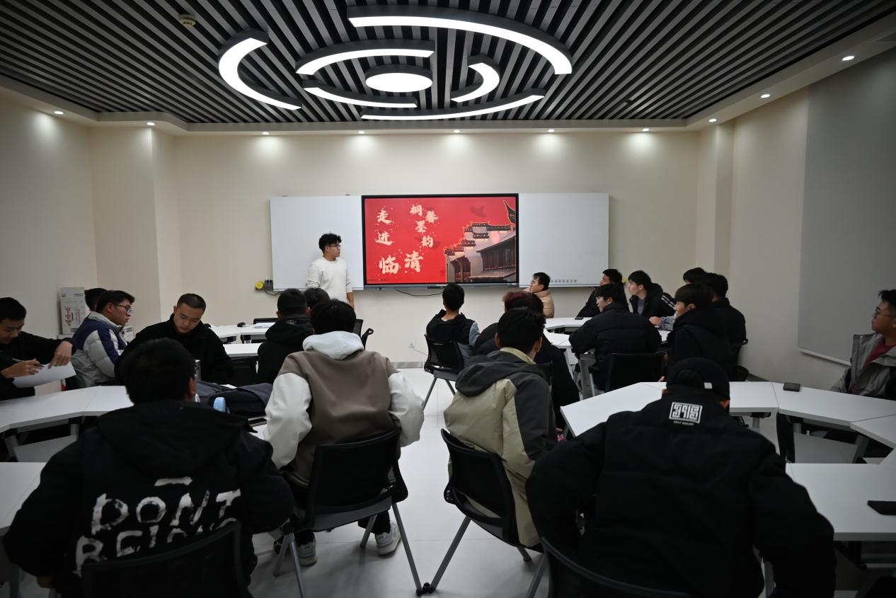 活动以“桐馨墨韵,走进临清”为主题,通过一段开场视频,带领同学们开启临清之旅。王柏舜详细介绍了聊城市临清市的特色,如舍利宝塔、运河钞关、考棚街等名胜古迹,张自忠、季羡林等名人名士的生平事迹以及临清龙灯、舞龙大会等非遗传统文化。