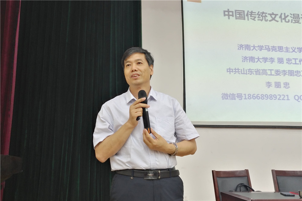 6月7日,由学院团委、学生处举办的“与信仰对话---中国传统文化漫谈”主题讲座在图书行政楼西报告厅举行,知名学者、济南大学马克思主义学院李朋忠教授主讲,副院长祝瑞花与现场近400名师生共同聆听了讲座。