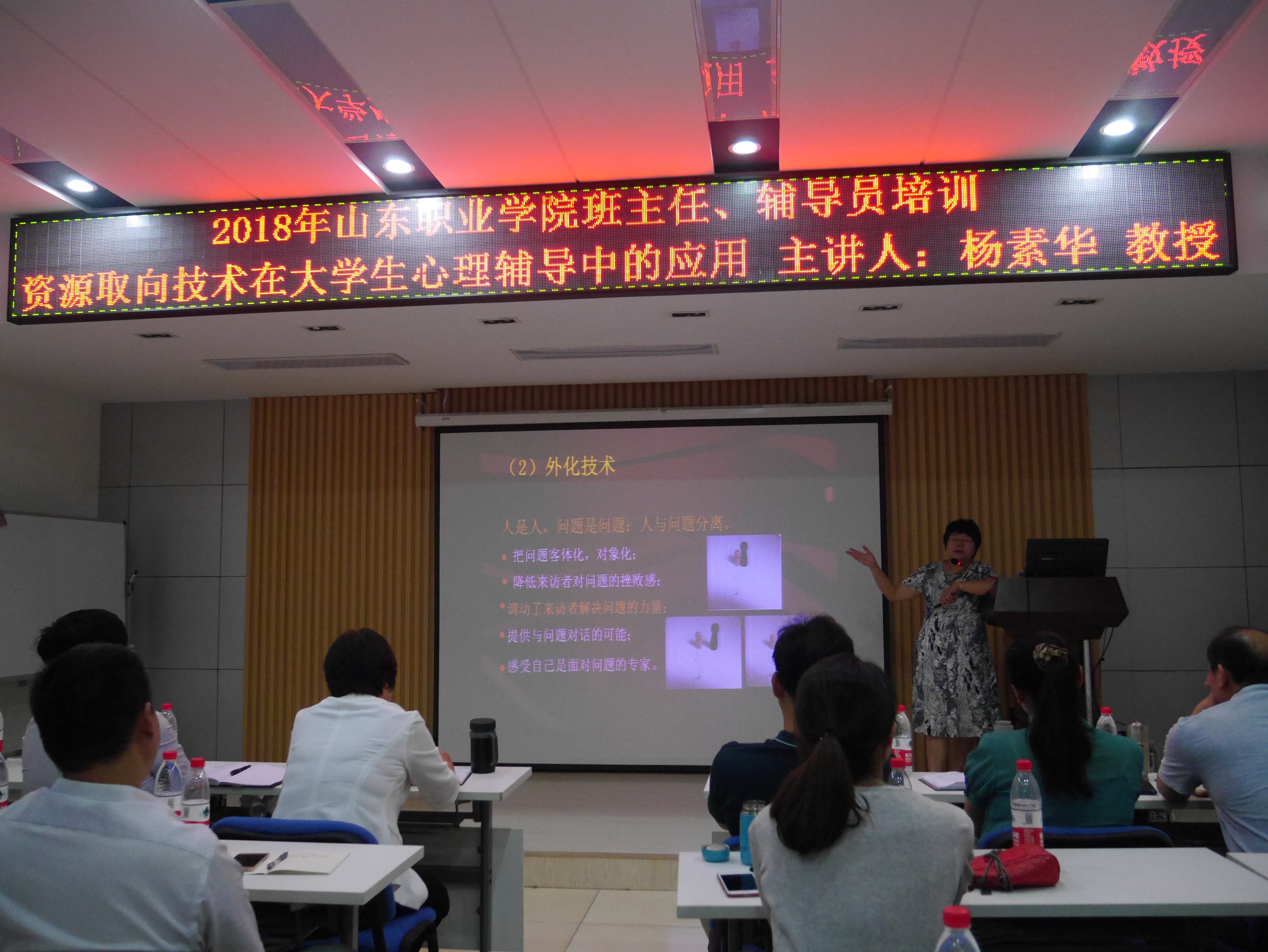 6月6日,我院举办辅导员、班主任培训,邀请山东省高职院校大学生心理健康教育师资培训基地主任、山东商业职业技术学院心理健康教育中心主任杨素华教授担任主讲。副院长祝瑞花出席活动,各系党总支书记、学工办主任、辅导员及无课班主任参加本次培训。