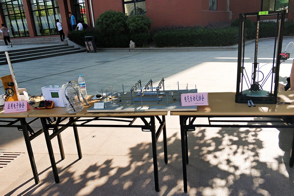 四、科创展览,以教育创新与新时代同频共振。进入中国特色社会主义新时代,培养时代需要的创新人才,以教育创新与新时代同频共振,成为每一所学校、每一位教育工作者的重要责任和使命。活动周期间,学院举办了科技创新成果展示活动。展出的30余件成果,全部为老师指导制作和学生自主研发,其中既有在省级大赛中摘金夺银的作品,也有首次亮相的新“玩意”。