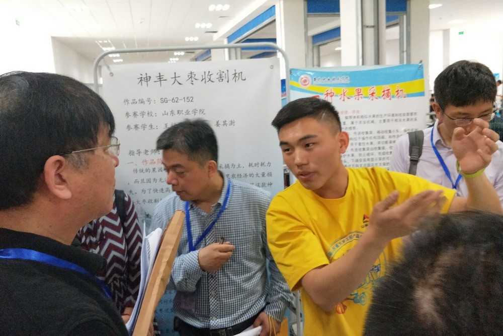 今年山东省大学生机电产品创新设计竞赛,学院师生努力拼搏,最终获2个一等奖、4个二等奖、5个三等奖好成绩。其中,由崔剑平、徐瑞霞老师指导,王福欣、贾磊、姜其澍、王玥、徐浩宇等五位同学制作的《神丰大枣收割机》,由张为宾老师指导,孙红磊、申龙、张城、刘凯瑞、尹子文等五位同学制作的《管道检测清理机器人》获本届大赛一等奖。《铁路多功能除雪检测探伤车》《自动化立体停车装置》《智能仓库管理》《基于人体感应的室内电气智能控制装置》等四个作品获大赛二等奖,《节能门锁》《智能全自动线材加工机》《智能节能路灯》《自动焊接装置》《全自动智能无尘黑板擦》等五个作品获大赛三等奖。
