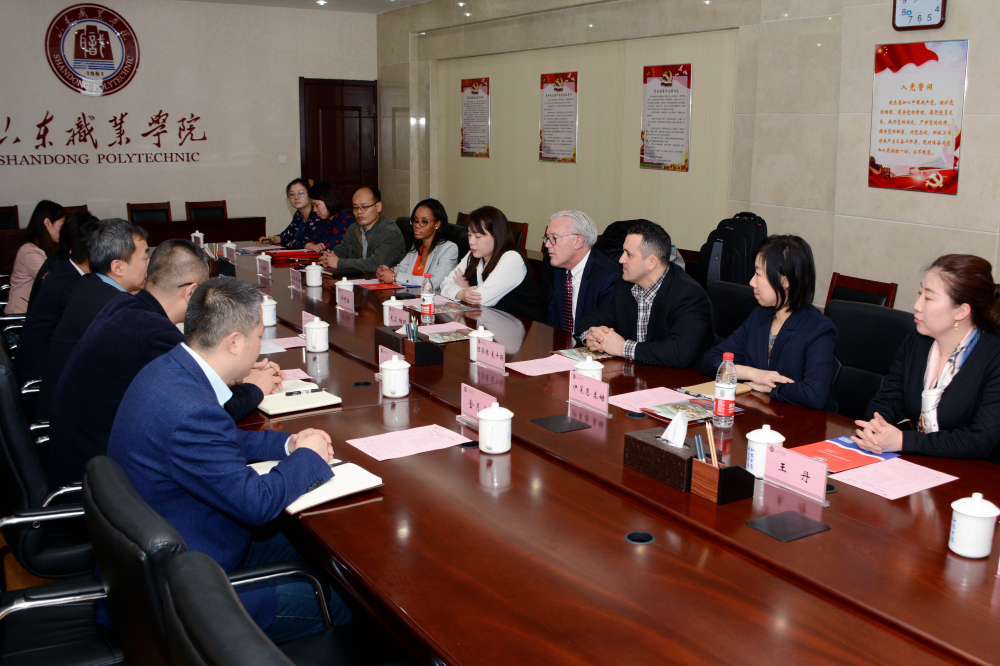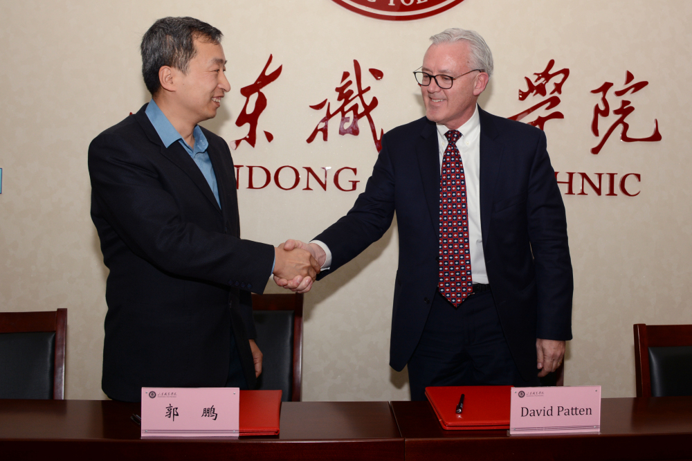 郭鹏对大卫帕顿先生一行到访表示欢迎,介绍了学院办学特色、行业背景、师资力量、专业设置以及招生就业等情况。大卫帕顿副校长介绍了美国海湾州立大学(波士顿)的优势特色专业、人才培养模式、国际交流合作项目以及开展情况。双方在前期联系沟通的基础上,商讨了国际合作项目具体细节,在中美合作办学、骨干教师海外培训、引进美方师资和优质教育资源等方面达成一致意见。通过此项目,我院将进一步提升国际化办学水平。会上,双方签署了合作备忘录,两校合作迈出实质性步伐。
