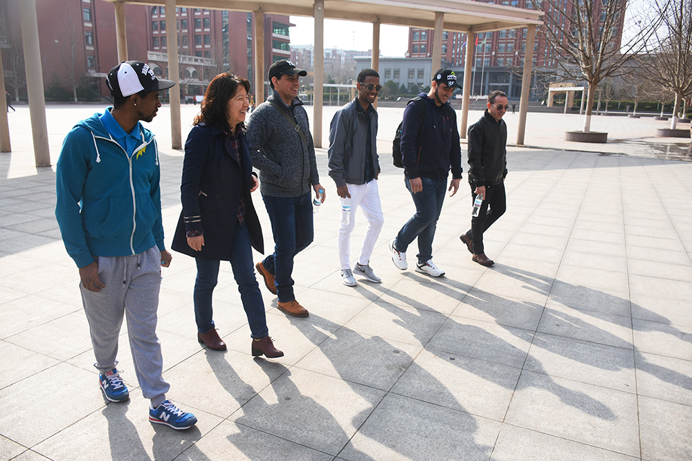 参观学习完成后,留学生们与在校同学们进行了交流活动,他们一起学习中国文化、一起阅读书籍、观看中国的视频介绍等等,并带领同学们参观了校园,一起去了小西湖、篮球场、操场等地方,让他们对学习环境有了进一步的熟悉,他们纷纷掏出手机拍照留念,脸上露出微笑,表示对将来的学习环境很满意。