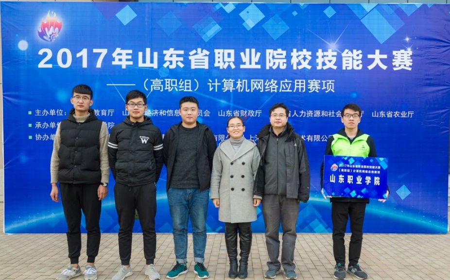 在今年的山东省职业院校技能大赛“计算机网络应用”赛项(高职组)比赛中,我院计算机网络技术专业学生周梦磊、孙新杰、张文汉组成的参赛队在李宪伟、平寒两位老师的指导下,力克群雄,取得团体一等奖优异成绩。