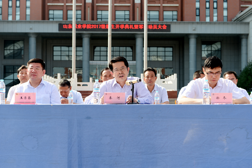 秦河在大会上发表了热情洋溢的讲话。他说,从今天开始,同学们将在山职展开新的人生画卷,领悟“知能共进、德道同优”的校训,领悟“团结、勤奋、求实、创新”的校风,在宁静的图书馆里博览群书,在热烈的师生交流中求真论道,在真枪实练的实习实训中练就技能,与志同道合的伙伴一起砥砺前行、挥洒青春、收获情谊。秦河寄语新同学们:一要修德,涵养性情,提升道德修养,努力使自己成为高尚的人;二要勤学,下得苦功夫,练就真技能,努力使自己成为德技双馨的高素质技能型人才;三要创新,开拓进取,勇于创新创造,在解决实际问题的过程中增长才干,在“大众创业、万众创新”的新时代把握先机,走向成功。