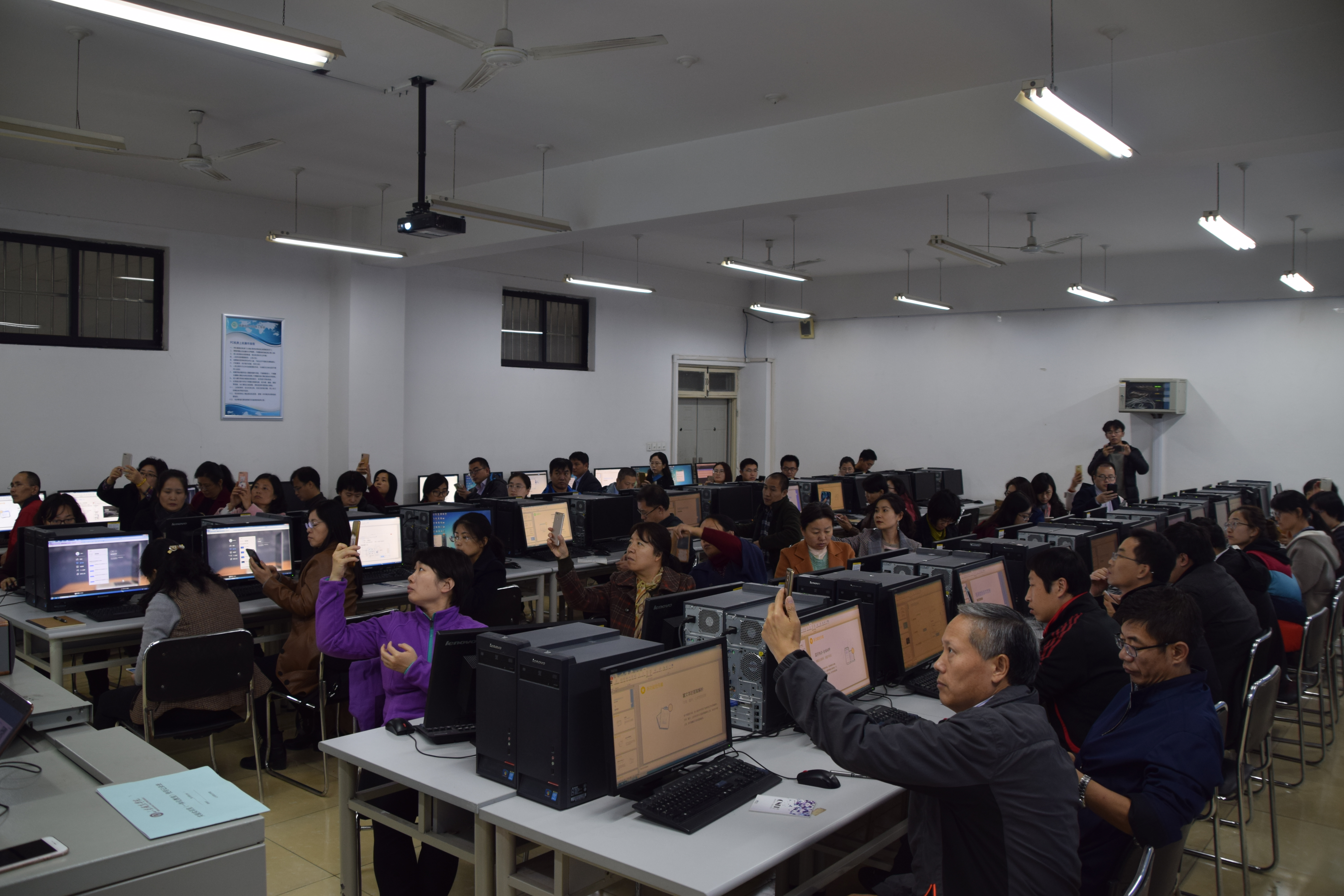 讲座中,许腾介绍了“学堂在线”及“雨课堂”的发展和成果,并对“雨课堂”的功能和使用方法进行了操作演示。培训期间,教师们参与到现场互动答题、PPT推送、发送投稿或弹幕等活动中,亲身体验了雨课堂的应用与信息化技术辅助教学的过程。