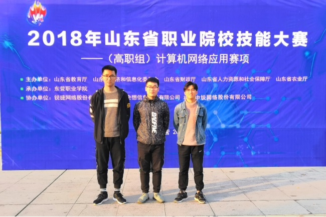 2018年山东省职业院校技能大赛“计算机网络应用”赛项(高职组)比赛于11月10日-11日举行,我院计算机网络技术专业学生张嵩晗、侯学宝、丁兆坤组成的参赛队在李宪伟、平寒两位老师的指导下,与来自全省42所高职院校的126名参赛选手同场竞技。经过激烈角逐,我院代表队最终取得团体一等奖的优异成绩。