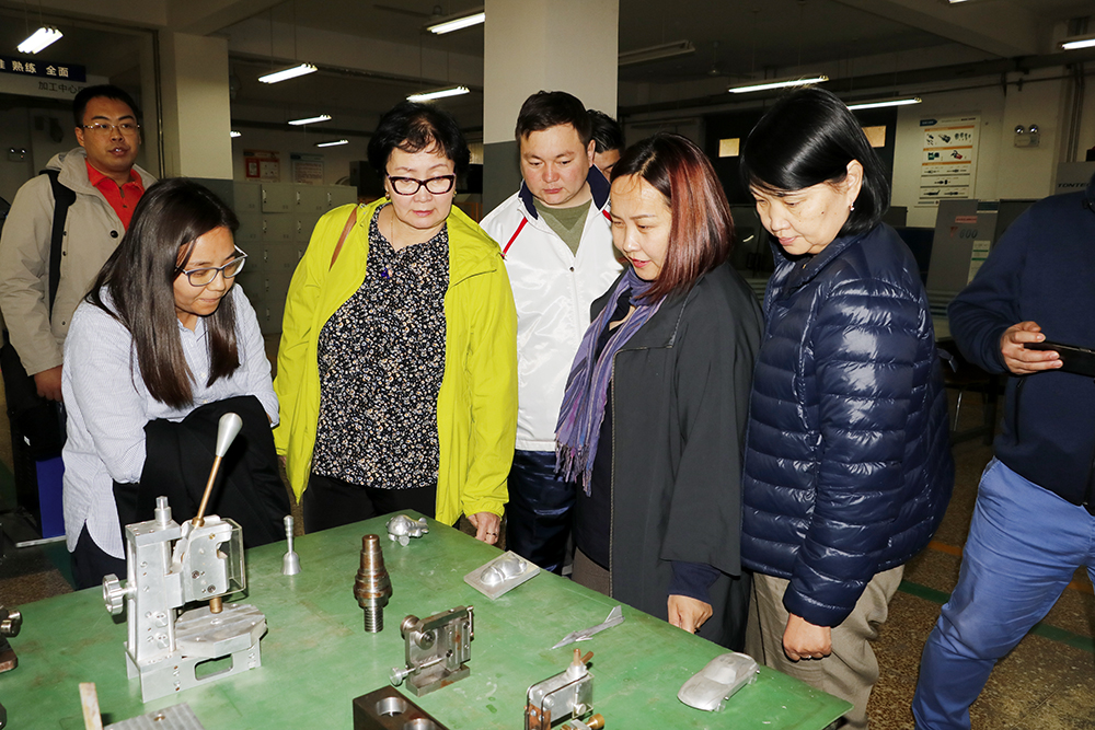 郭鹏陪同蒙古国乌兰巴托铁路局工程师一行参观了数控车间、现代通信技术实训室、SMT实训室、施工技术实训场、轨道交通实训实验中心等实训场所,恩克博尔德对学院实验实训条件给予充分肯定。