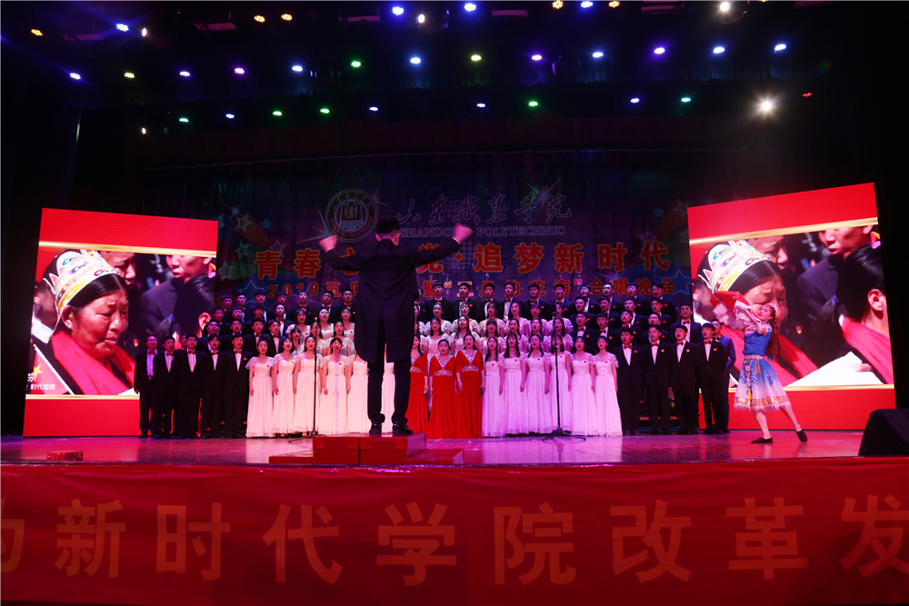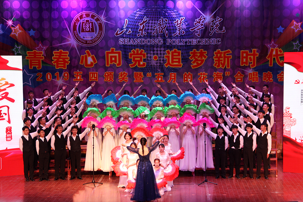 5月9日,学院举办了“青春心向党·追梦新时代”五四颁奖暨“五月的花海”合唱晚会,表彰优秀集体和先进个人,放歌赞颂祖国七十年来取得的辉煌成就,抒发致力于中国特色社会主义新征程的满怀激情,表达了积极投身实现中华民族伟大复兴的中国梦的坚定信心。