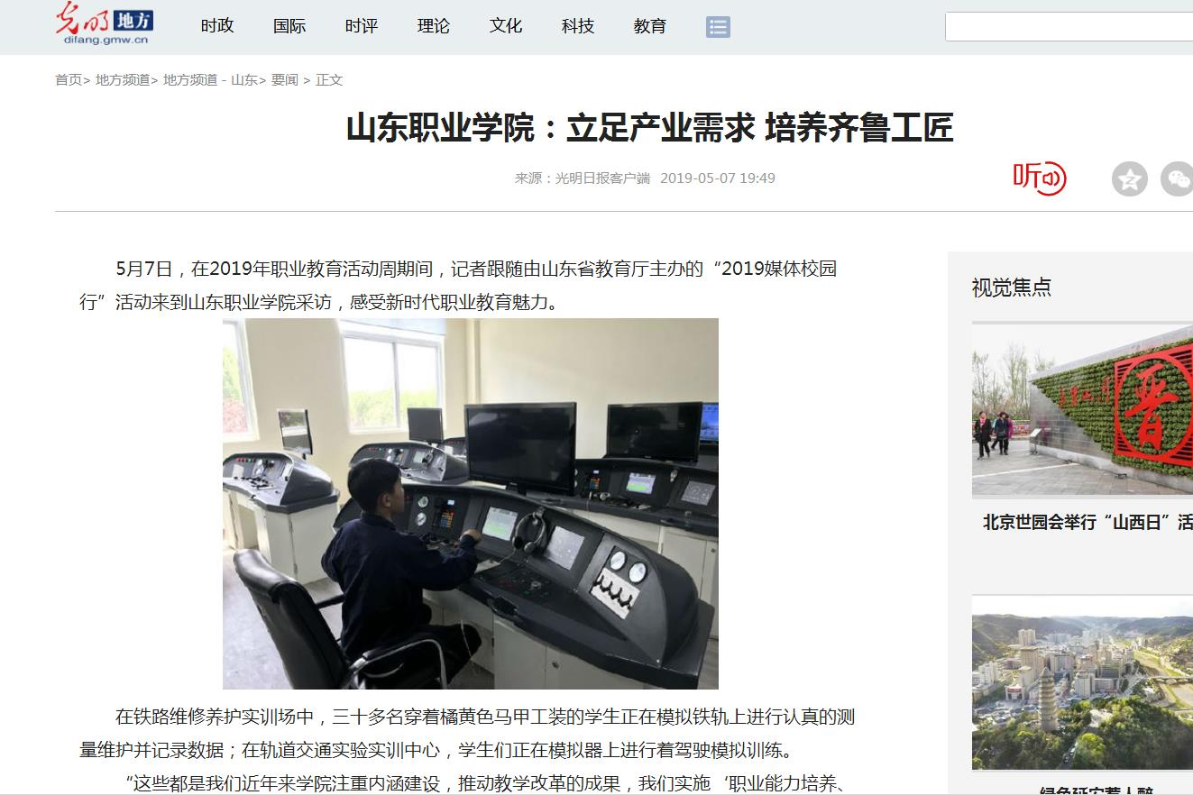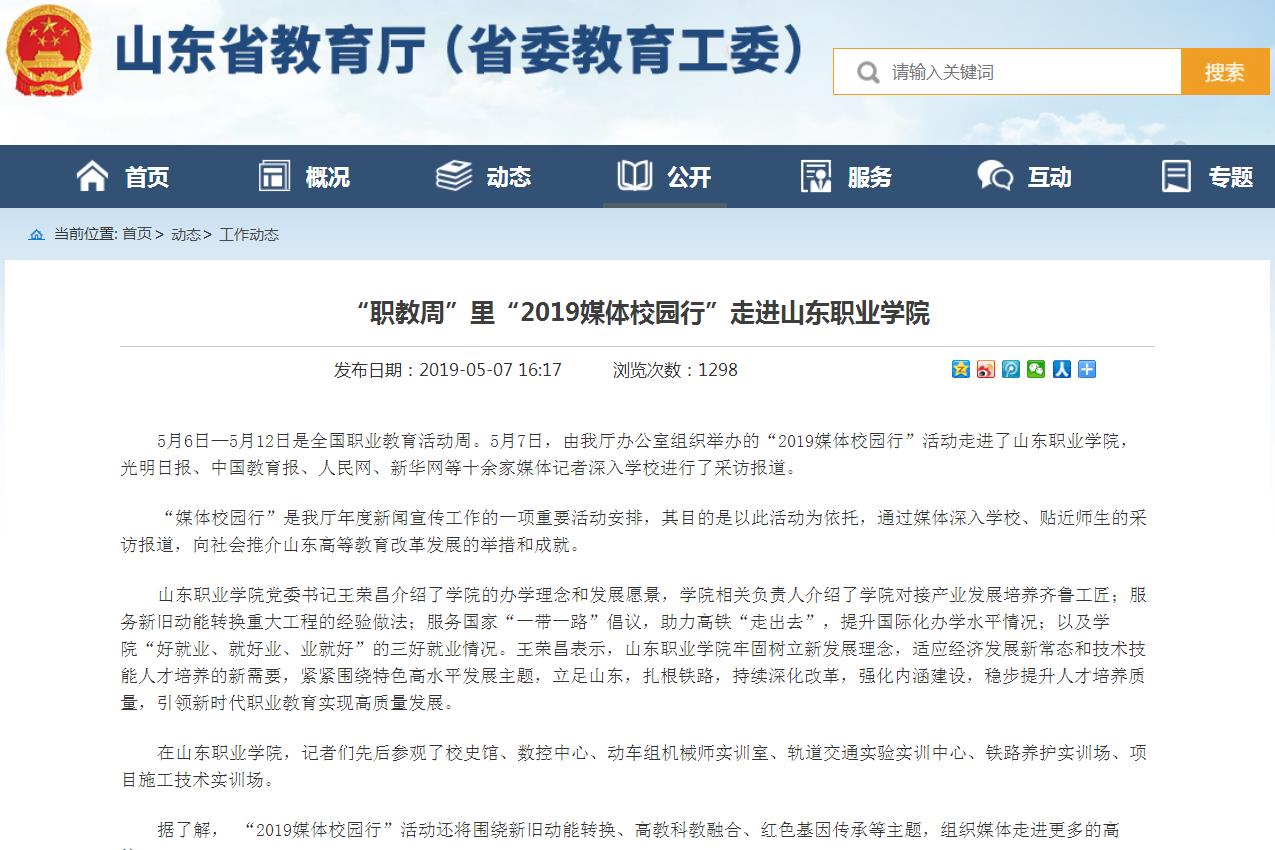 利用媒体进校园活动,大力宣传学院加快优质校建设,在培养齐鲁工匠后备人才、服务全省新旧动能转换重大工程、服务国家轨道交通事业发展和“一带一路”建设等方面取得的成绩。光明日报、中国教育报、山东教育电视台、山东教育报、齐鲁晚报、经济导报、人民网、新华网、中国网、齐鲁网、凤凰网、大众网、新浪网等10多家国家级、省级媒体发布学院采访报道20余篇。