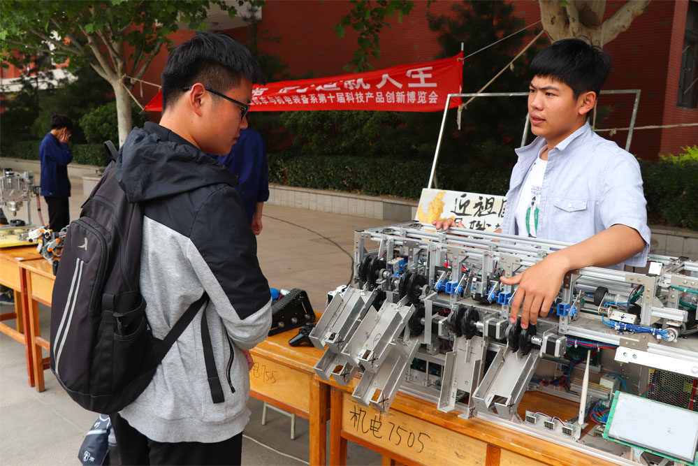 5月8日,铁道机车与机电装备系举办了第十届机电产品创新博览会。本次展会设获奖产品区、自主创新产品区、机器人产品区三个展区,近20件优秀产品亮相展会。参观过程中,产品设计者和解说员向观众现场演示作品、讲解设计原理和应用特点,并就产品的设计理念、人性化的功能设计和巨大的市场推广价值与设计者进行了交流。很多外国友人也参与到创新产品的互动体验中,在工作人员的热情引领和翻译人员的细致讲解下,详细了解了产品的设计思路和应用特点,在惊喜赞叹之余纷纷拿起手机录像留念。