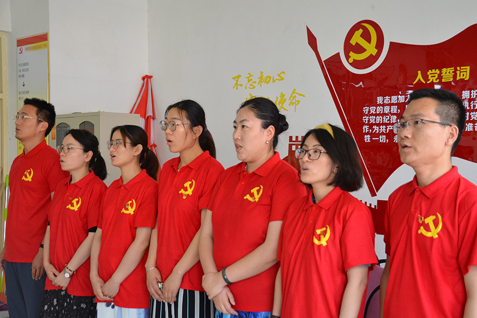 6月28日,学生党支部举办了重温入党誓词宣誓活动。党员面向党旗,紧握右拳,庄严宣誓,接受精神洗礼。大家一致表示,今后一定会积极发挥党员的先锋模范作用与带头作用,为新时代中国特色社会主义事业发展贡献力量。