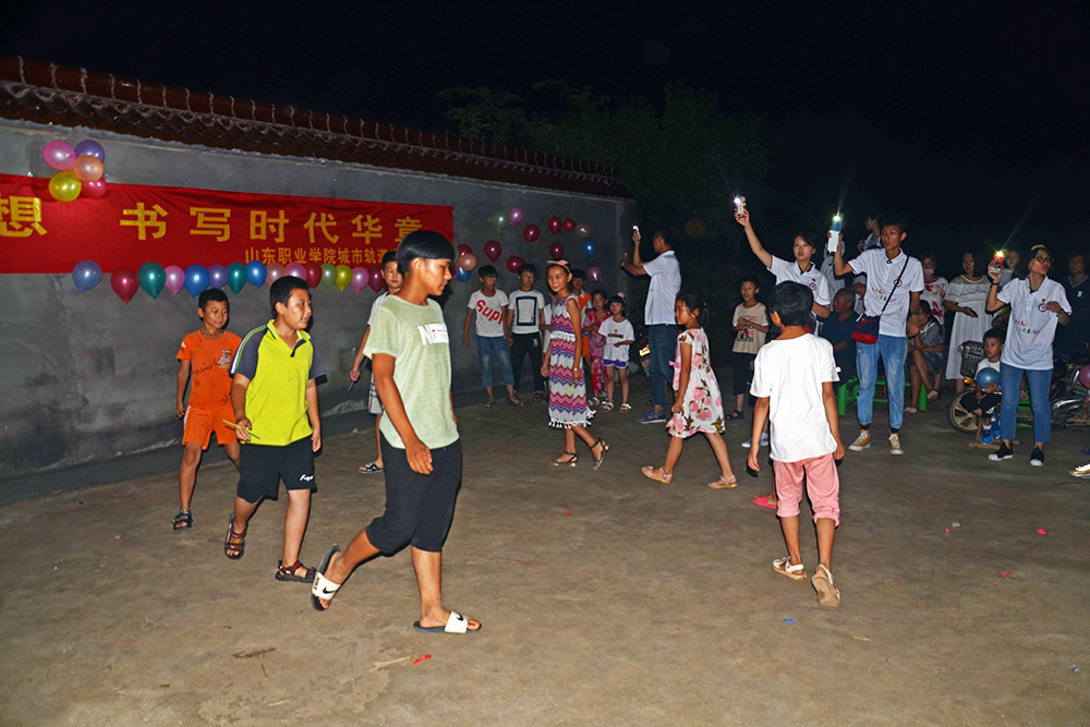 7月11日,社会实践服务队为马巷村带来精彩的文艺汇演,并向贫困儿童捐赠学习用品、赠送书籍。