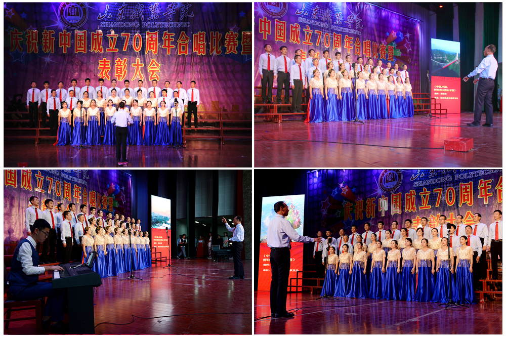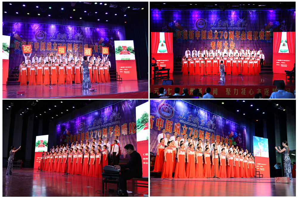 歌声让我们抒怀,歌声让我们振奋,歌声让我们记住历史,歌声让我们憧憬未来。2019年是新中国成立70周年,是全面建成小康社会、实现第一个百年奋斗目标的关键之年。此次活动也是学院“不忘初心、牢记使命”主题教育重要内容之一。我们将不忘初心、牢记使命,把爱国情化作报国志,以优质校建设和“双十”高职院校建设为主线,推动学院各项工作迈出新步伐、实现新跨越、再上新台阶,谱写更加辉煌的新篇章,用实际行动向祖国致敬!