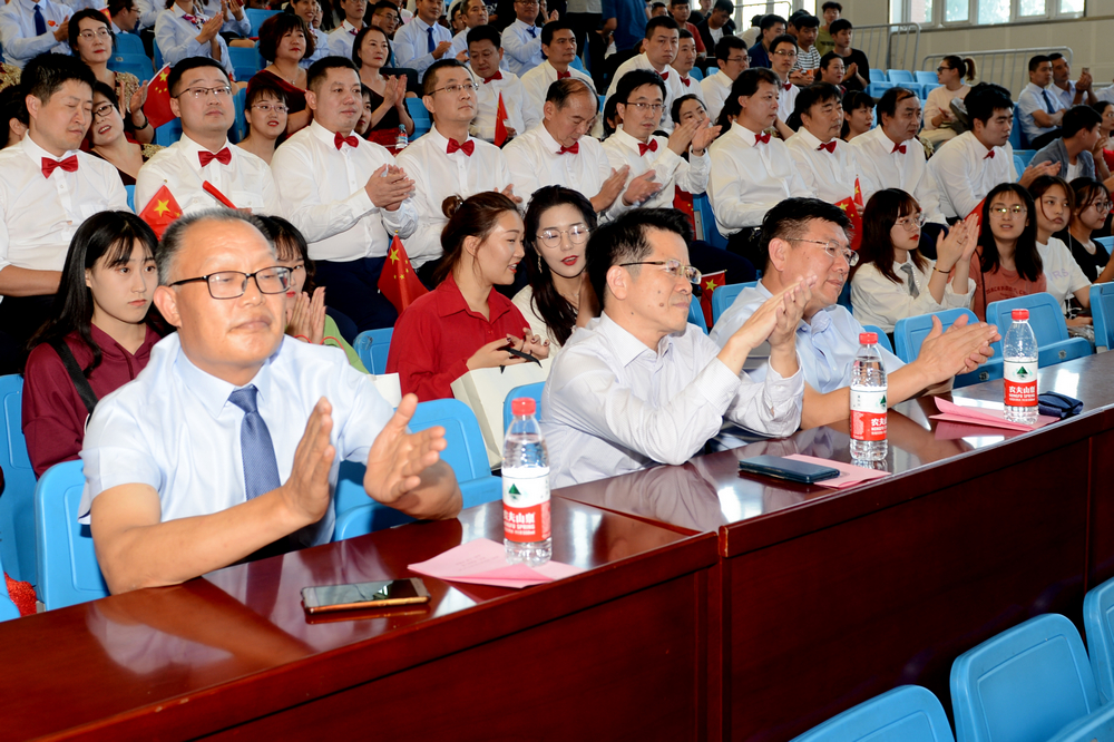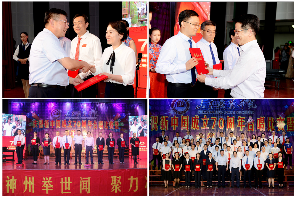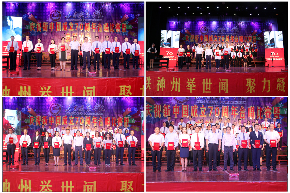 不忘初心齐颂盛世庆七十华诞,牢记使命行为世范仰德铸师魂。9月24日,我院隆重举行庆祝新中国成立七十周年合唱比赛暨表彰大会,党委书记王荣昌、院长秦河为2019年学院最美教师、优秀教师和先进教育工作者颁发荣誉证书,学院领导班子成员与全院教职工一道共发心声,深情演绎对我们伟大的中国共产党、伟大祖国的无比热爱、无比赞美之情,唱响了共产党好、社会主义好、改革开放好、新时代好、伟大祖国好、各族人民好、新生活好的时代主旋律。