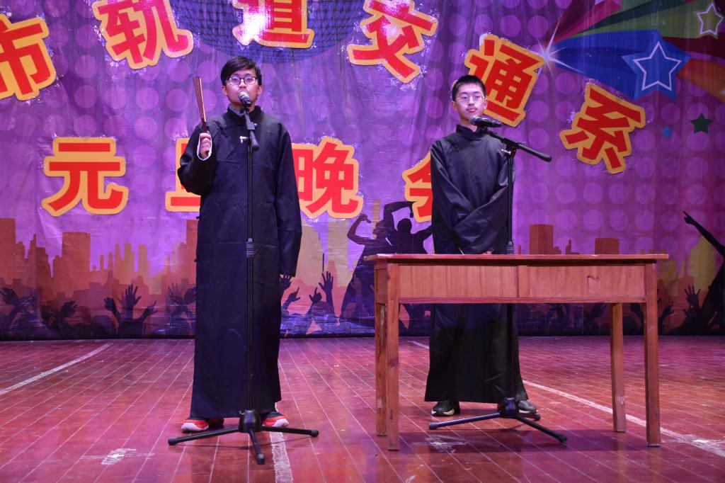 中间暖场环节进行的游戏《爱我你就帮帮我》台上台下互动热烈、爆笑不断;相声《大话宋词》妙语连珠,字字戳中同学们的笑点;歌舞表演《花儿与少年》充斥着风华正茂,挥斥方遒的满腔热血;小品表演《外卖来敲门》,以幽默风趣话语向我们诉说生活中的琐碎也能带来趣味;舞蹈《归去来兮》静谧委婉,楚楚动人,令观众沉迷其中;舞蹈《七》通过表现青年们态度为本次元旦晚会留下浓重的一抹色彩。