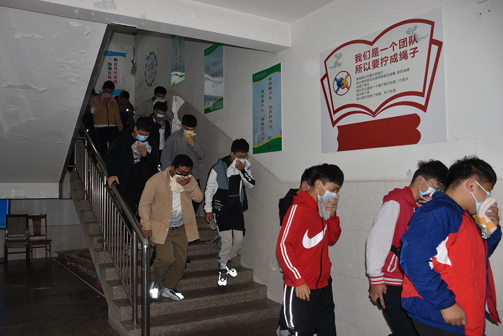 会后,安全保卫处与各书院联合开展了新生消防演练和逃生疏散演练活动,向新生详细介绍了灭火器的使用步骤及运用技巧,并现场演示了灭火器使用的操作流程。3900余名新生按照提前制定的演练方案分别从4栋学生公寓紧急疏散,迅速安全撤离公寓楼,进入预定疏散区域。从疏散到集合,用时不到5分钟。演练活动顺利结束,整个过程安全、规范、快速、有序。